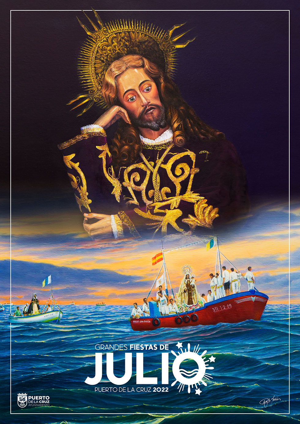 Puerto de la Cruz vuelve a brindar a la ciudadanía portuense y a todos sus visitantes las Grandes Fiestas de Julio que este año recuperan la calle para venerar en una multitud de actos al Gran Poder de Dios, la Virgen del Carmen y San Telmo, imágenes que volverán a navegar en la tradicional procesión marítimo-terrestre en uno de los días grandes de la celebración este próximo martes 12 de julio.